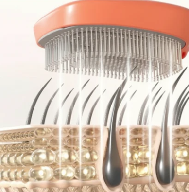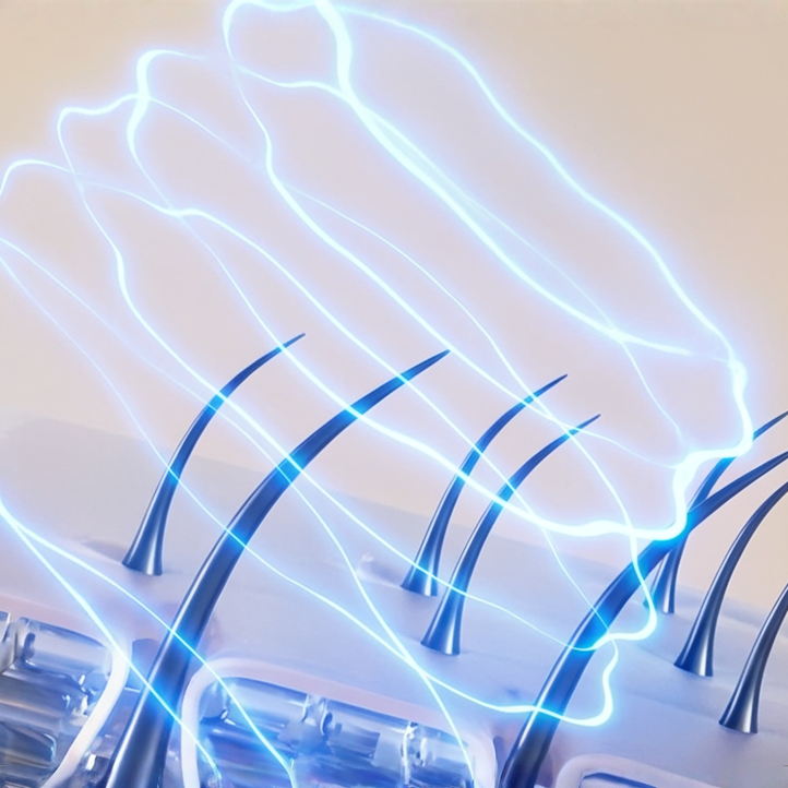 Masaż wibracyjny pobudza mikrokrążenie skóry głowy i delikatnie rozluźnia napięcia. Ułatwia dopływ tlenu i składników odżywczych do mieszków włosowych, co może wspierać ich wzmocnienie i lepszy wzrost włosów. Regularne wibracje pomagają także zmniejszać uczucie sztywności i poprawiają komfort skóry.