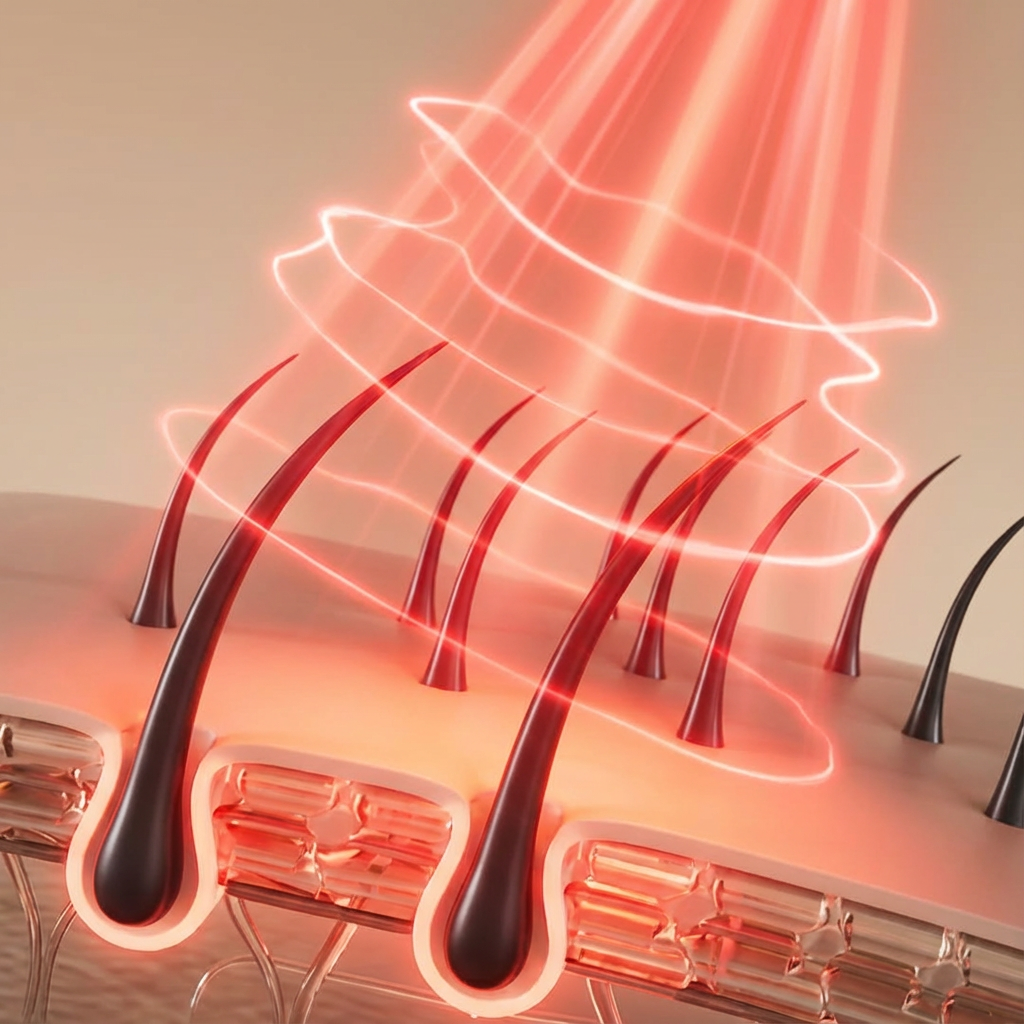 LLLT wykorzystuje niskoenergetyczne światło laserowe, które dociera głęboko do mieszków włosowych. Stymuluje ich aktywność, poprawia ukrwienie skóry głowy i wspiera metabolizm komórek. Regularna terapia może wzmacniać cebulki, spowalniać przerzedzanie oraz wspierać naturalny wzrost włosów.