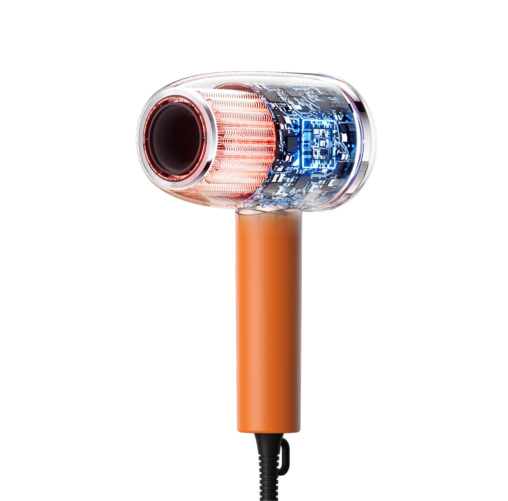 Silnik o prędkości 110 000 obr./min generuje silny przepływ powietrza, osiągając prędkość do 50 m/s, co pozwala na szybkie suszenie.