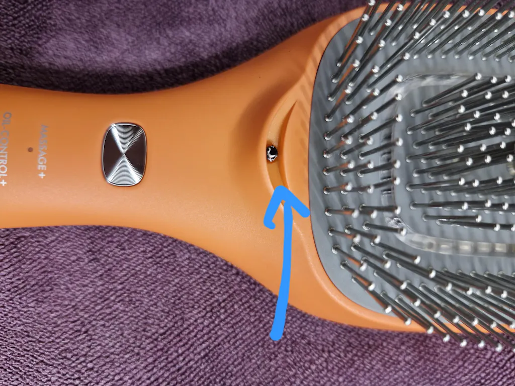 Wersja PRO umożliwia podawanie preparatów pielęgnacyjnych bezpośrednio na skórę głowy podczas używania urządzenia.